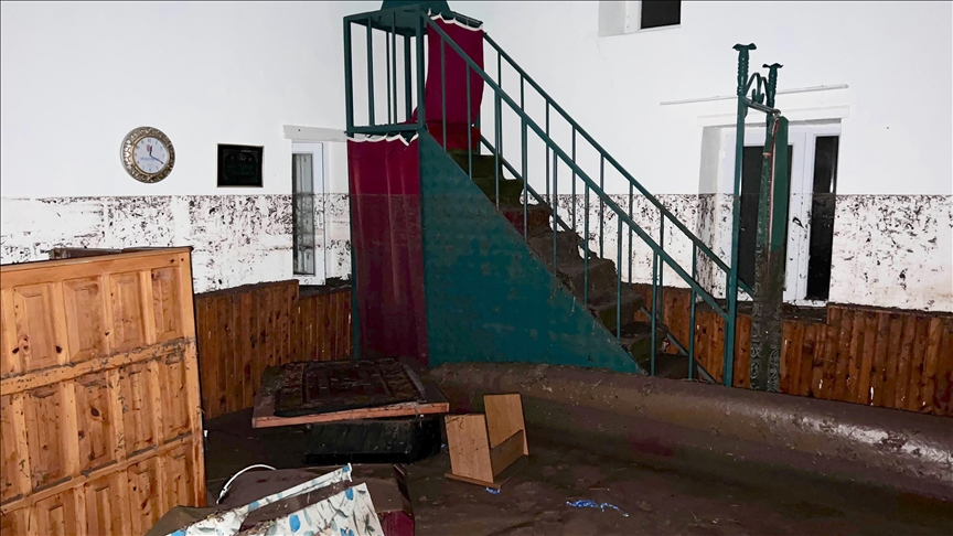 Ahatlı Mahallesi'ndeki Ahatlı Camisi'ni de su bastı. Kullanılmaz hale gelen camide hasar oluştu.