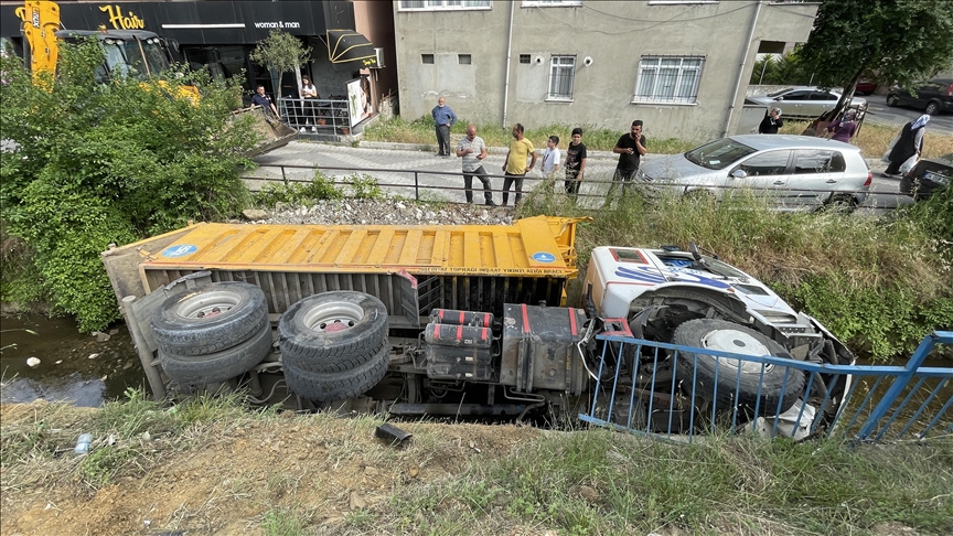 Durakta bekleyen yolcular kaçışırken kamyon, Göksu Deresi'ne bağlanan su kanalına devrildi. Kamyon şoförü Mehmet B'nin bu esnada araçtan atlayarak kazadan yara almadan kurtulduğu öğrenildi.