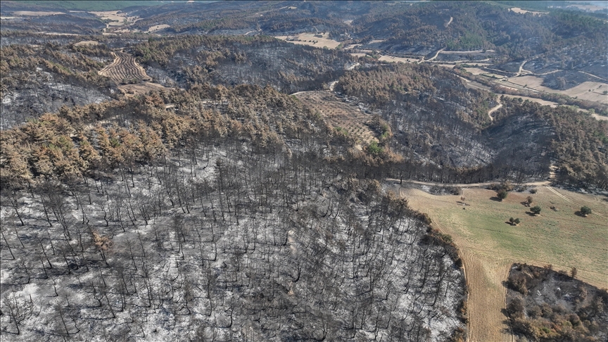 Gelibolu'da alevlerin etkilediği orman ve tarım alanları dronla görüntülendi.