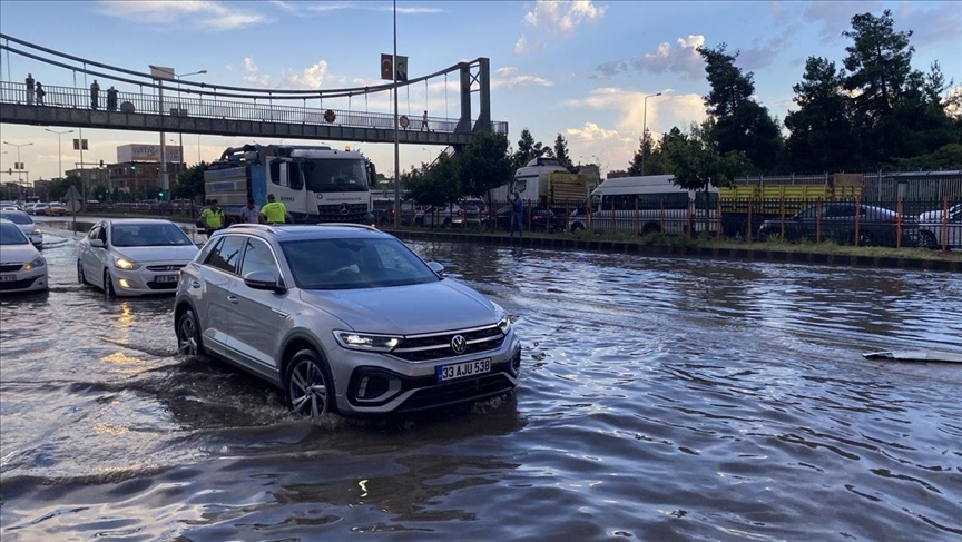 Yağışa hazırlıksız yakalanan yayalar ile sürücüler zor anlar yaşadı. Caddelerde uzun araç kuyrukları oluştu.