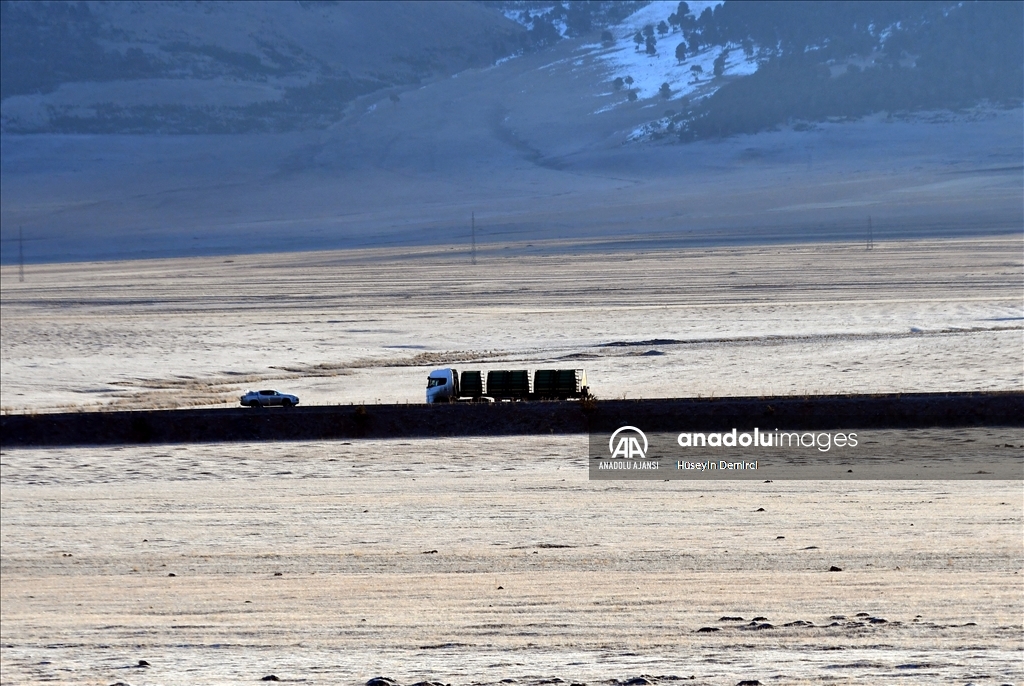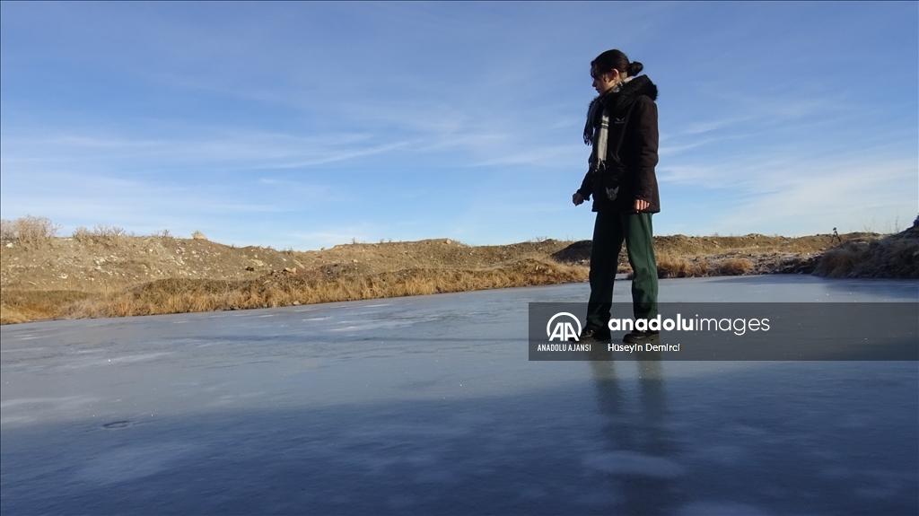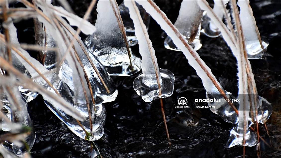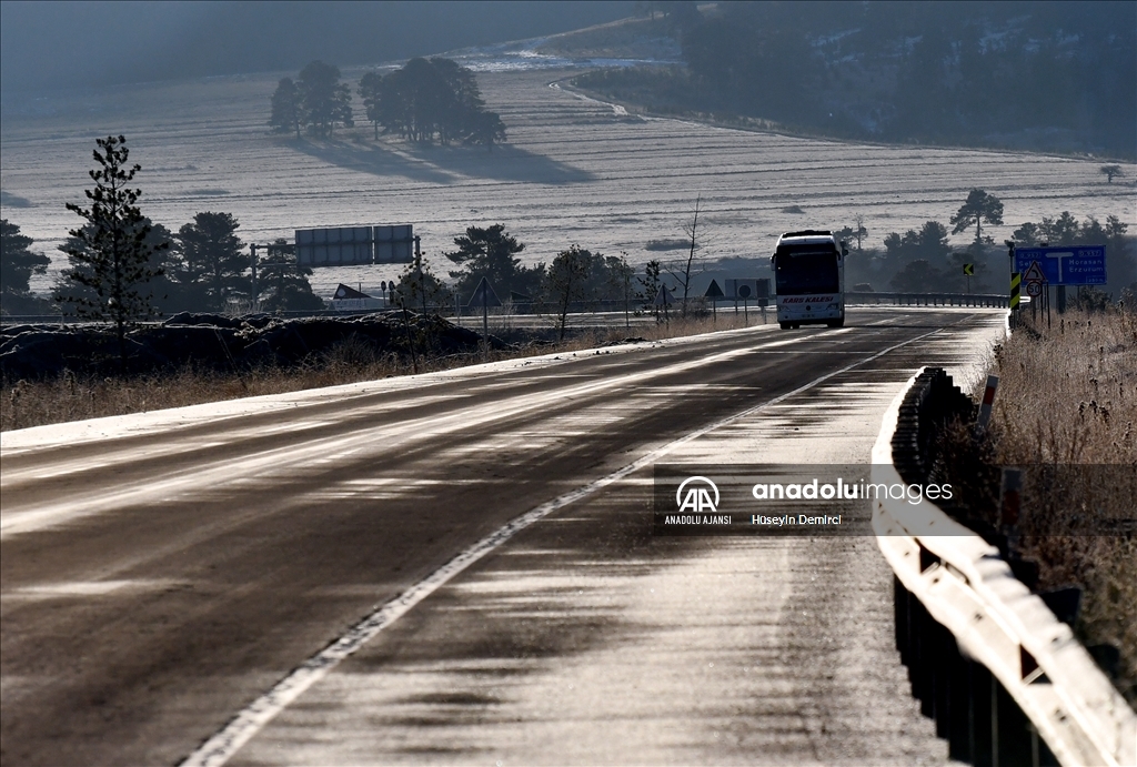Erzurum'da soğuk hava özellikle yüksek kesimlerde buzlanmaya neden oldu.
