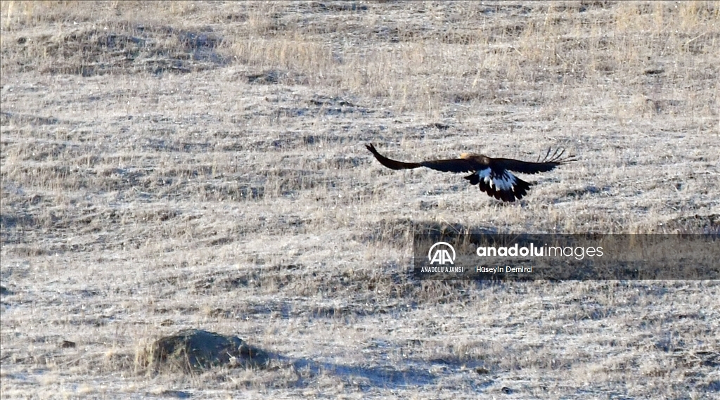 Kuşlar karla kaplı arazide yiyecek bulmakta güçlük çekti.