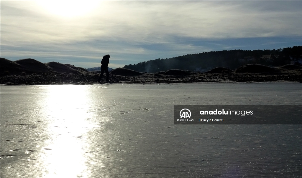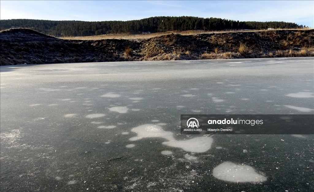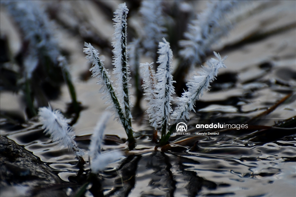 Sarıkamış ilçesinde de etkili olan soğuk hava nedeniyle Hançerli bölgesindeki dereler, göletler buz tuttu, ağaçlar ve bitkiler kırağı ile kaplandı.