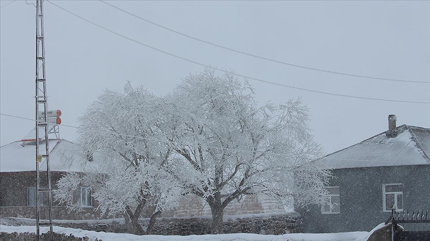 Bitki ve ağaçlarda kırağı oluşurken, kar yağışıyla beyaza bürünen köylerde güzel görüntüler ortaya çıktı.