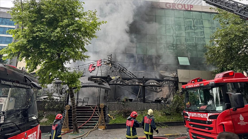 AA Canlı Yangın nedeniyle yoğun duman binaya yayılırken, alevler kafe ve markete de sıçradı.