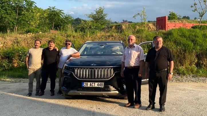 Giresun'a şahsa teslim edilen ilk Togg olma özelliği taşıyan aracın anahtarı sahibi Muhammet Mercan'a Samsun'da verildi.