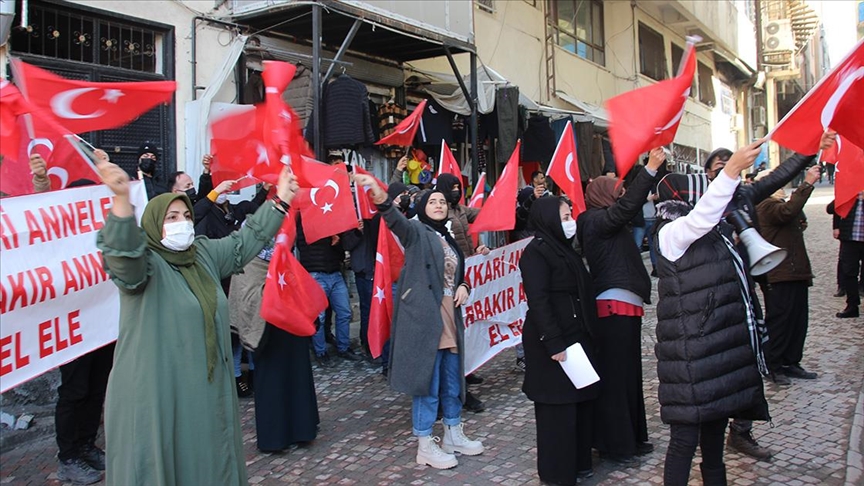 HDP ve terör örgütü PKK aleyhine sloganlar atan aileler, çocuklarına teslim olmaları için çağrıda bulundu.