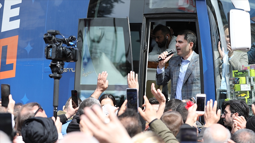 Murat Kurum, Gaziosmanpaşa ve Bayrampaşa'da seçim otobüsüyle gezerek vatandaşları selamladı.