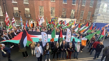 İsrail ve ABD aleyhine slogan atan gruptakiler, "Refah açılsın, Gazze yaşasın", "Özgür Filistin", "Kıyamete kadar boykot" ve "Zalimler için yaşasın cehennem" pankartlarıyla Gazze'ye yönelik saldırılara tepki gösterdi.