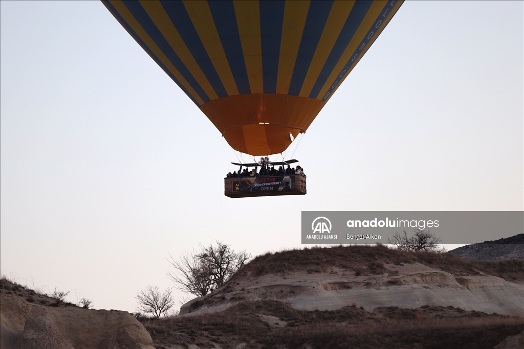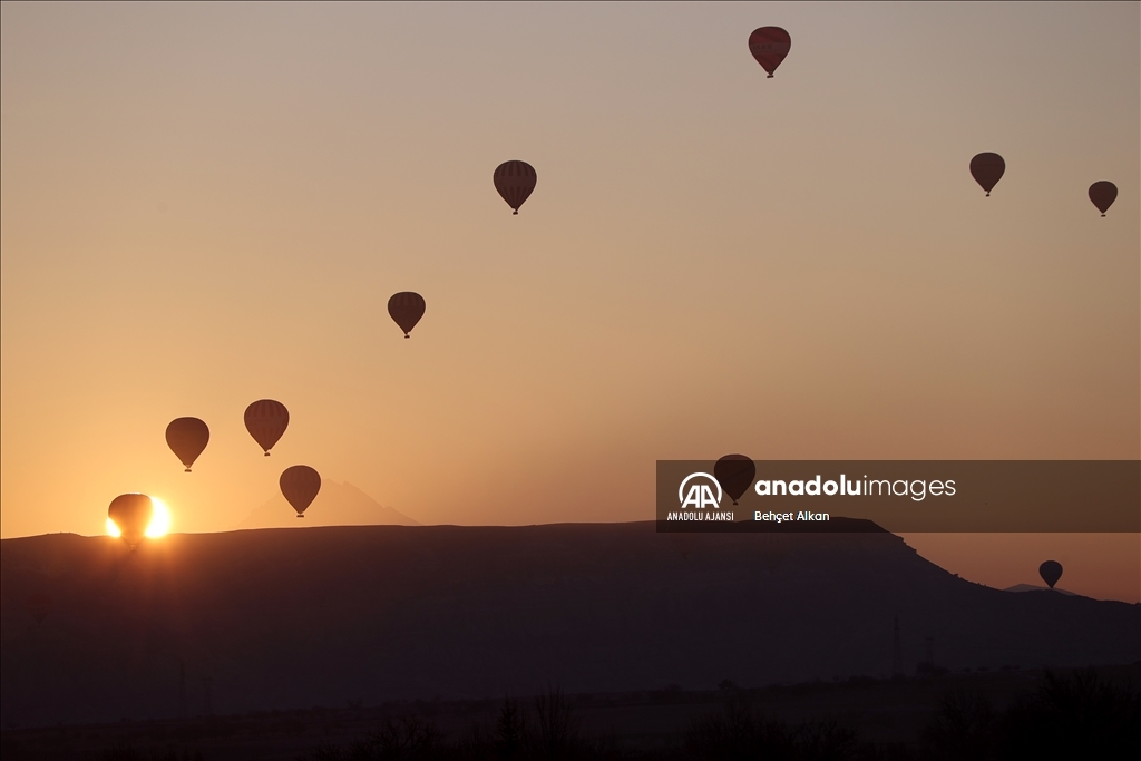 Nevşehir'in Göreme beldesindeki Meskendir Vadisi'nde uçuş için hazırlanan balonlar, turistlerin binişinin ardından gökyüzüne yükseldi.