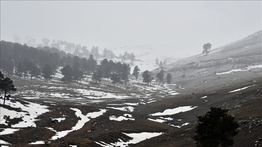 Bölgedeki ormanlık alanlar karla beraber beyaza büründü.