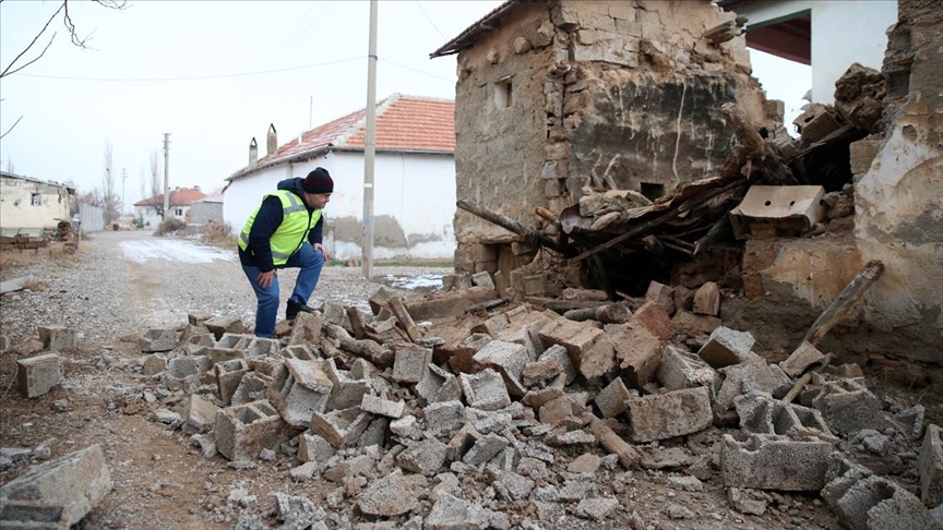 Depremden zarar gören vatandaşların kaymakamlığa ihbarda bulunmasının ardından ekipler, bölgeye gelerek hasar tespiti için çalışma yapıyor.