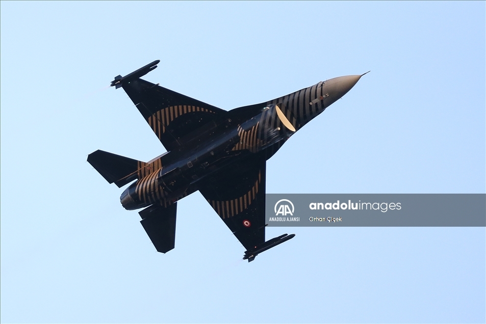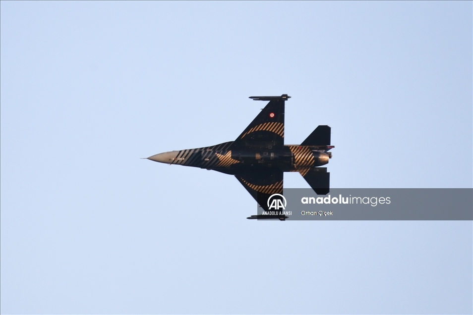 Bazı vatandaşlar, F-16 uçağıyla yapılan akrobasi hareketlerini cep telefonlarıyla kaydetti.