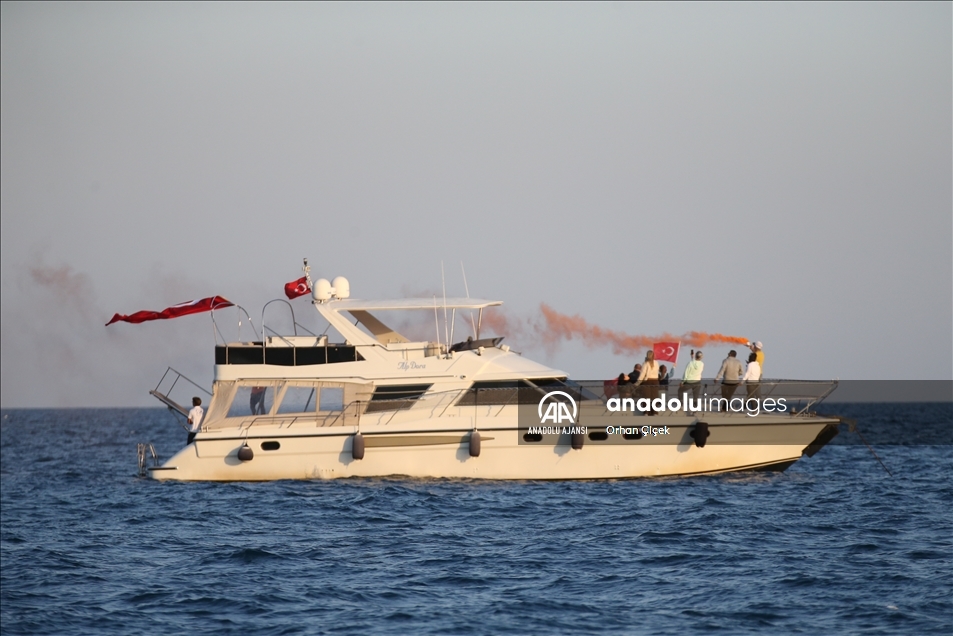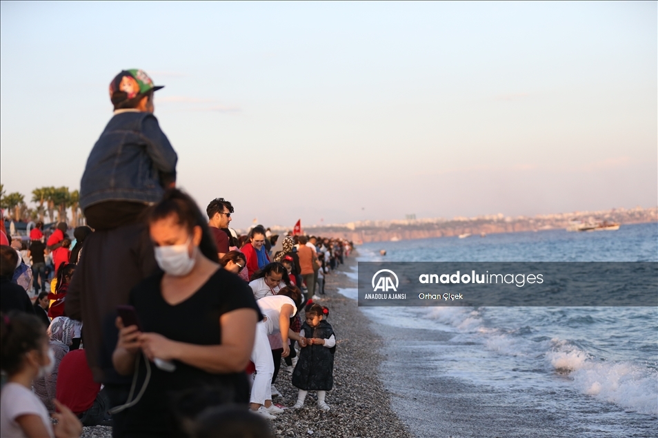 Konyaaltı Sahili üzerindeki gösteri, yoğun ilgi gördü. Sahil boyunca deniz kenarında ve yürüyüş yolunda toplanan çok sayıda kişi ve denizde tekne ile yatlardakiler gösteriyi izledi, time alkışlarla destek verdi.