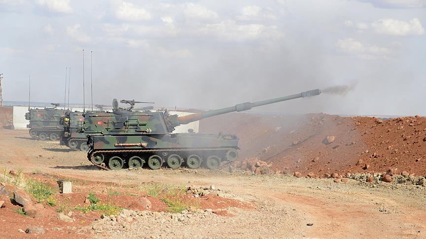 Türk Silahlı Kuvvetlerince (TSK) atış yapılan mevziler, hedef tespit sistemleriyle belirlendi. Bunun üzerine dün akşam saat 18.00'den itibaren DAEŞ mevzilerine 233 Fırtına topu, 40 çok namlulu roketatar ve 4 tank ile atışlar yapıldı. Koalisyon uçaklarıyla hedeflere yönelik 11 hava harekatı icra edildi.
