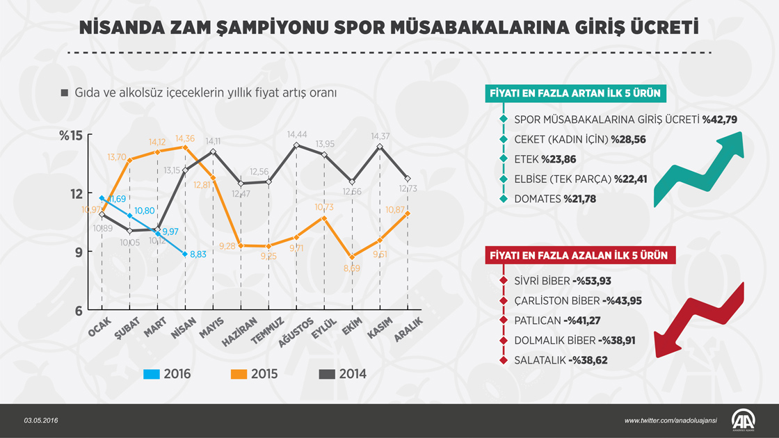 Türkiye İstatistik Kurumu (TÜİK) nisan ayı verilerine göre, tüketici fiyatları bazında nisanda en yüksek fiyat artışı, yüzde 42,79 ile spor müsabakalarına giriş ücretinde gerçekleşti. ( Ahmet Burak Özkan - Anadolu Ajansı )