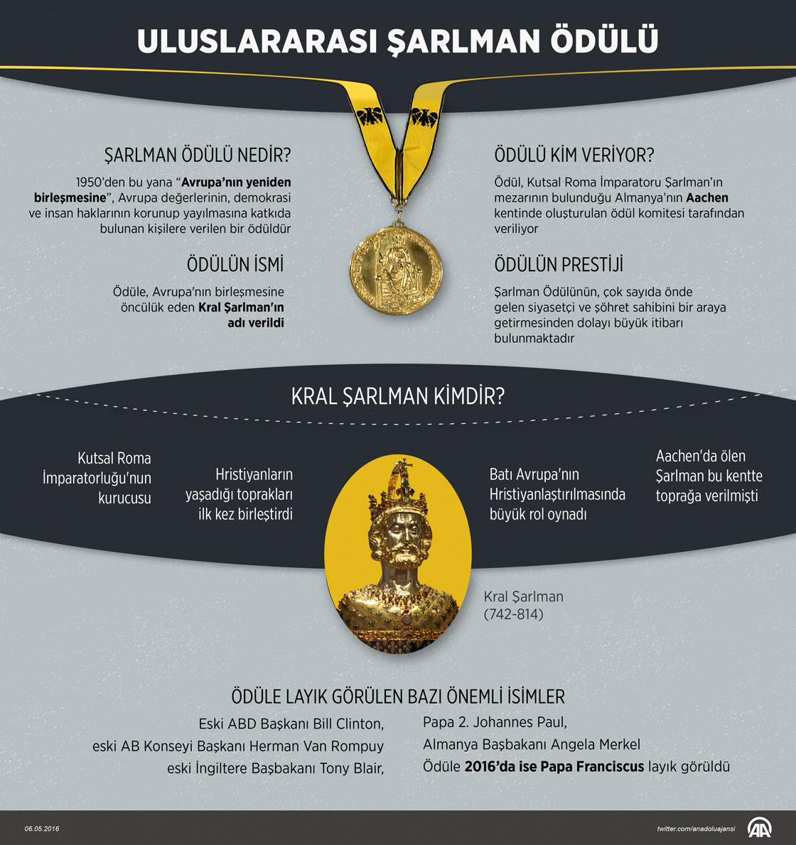 Katolik aleminin ruhani lideri ve Vatikan Devlet Başkanı Papa Franciscus'a Avrupa’nın en eski ödüllerinden olan Uluslararası Şarlman ödülü verildi.
