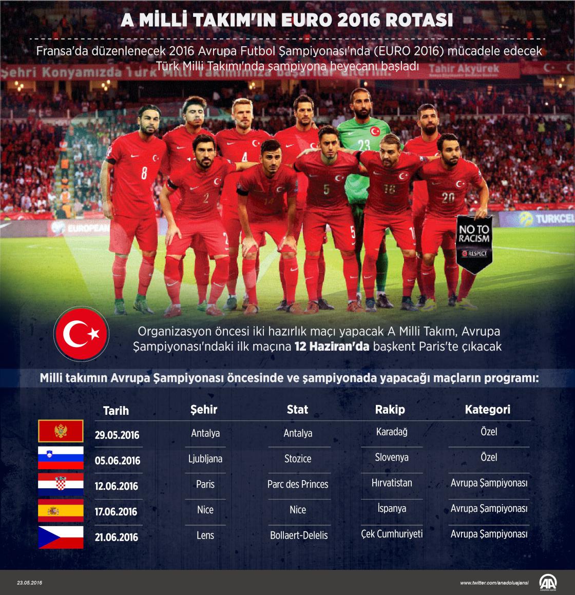 Fransa'da düzenlenecek 2016 Avrupa Futbol Şampiyonası'nda (EURO 2016) mücadele edecek Türk Milli Takımı'nda şampiyona heyecanı başladı. ( Grafik: Muhammed Ali Yiğit - Anadolu Ajansı )