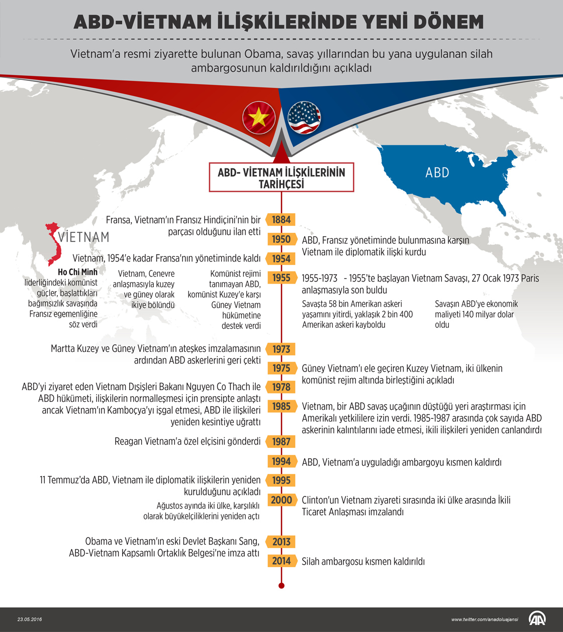 ABD Başkanı Obama'nın Vietnam'a uygulanan silah ambargosunun kaldırıldığını açıklaması, iki ülke arasındaki ilişkilerde yeni bir dönemi başlattı.