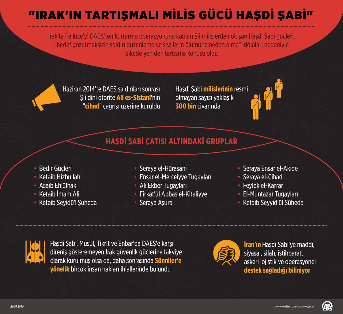 Irak'ta Felluce'yi terör örgütü DAEŞ'ten kurtarma operasyonuna katılan Şii milislerden oluşan Haşdi Şabi güçleri, "hedef gözetmeksizin saldırı düzenleme ve sivillerin ölümüne neden olma" iddiaları nedeniyle ülkede yeniden tartışma konusu oldu. ( Murat Usubaliev - Anadolu Ajansı )26 Mayıs 2016•Güncelleme: 27 Mayıs 2016