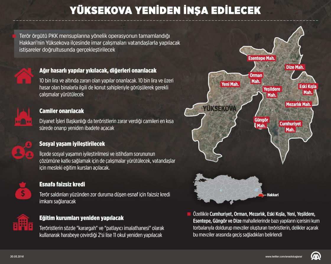 Terör örgütü PKK mensuplarına yönelik operasyonun tamamlandığı Hakkari'nin Yüksekova ilçesinde imar çalışmaları vatandaşlarla yapılacak istişareler doğrultusunda gerçekleştirilecek. ( Yasin Demirci - Anadolu Ajansı )