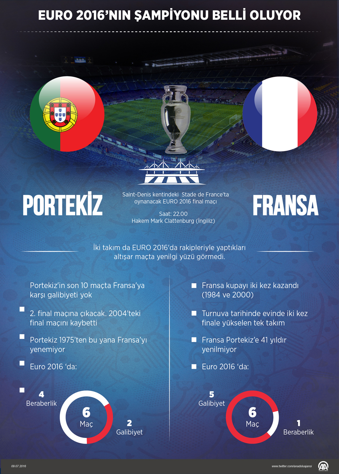 2016 Avrupa Futbol Şampiyonası (EURO 2016) final maçında Portekiz ile ev sahibi Fransa yarın karşı karşıya gelecek. ( Muhammed Ali Yiğit - Anadolu Ajansı )