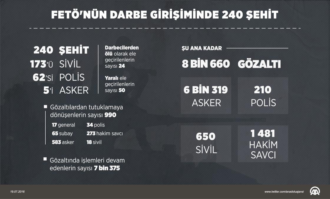FETÖ darbe girişiminin acı tablosu: 240 şehit
