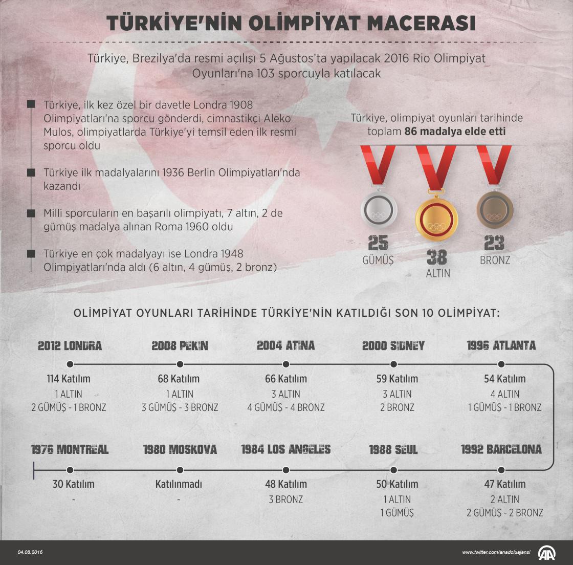 Türkiye, Brezilya'da resmi açılışı 5 Ağustos’ta yapılacak 2016 Rio Olimpiyat Oyunları'na 103 sporcuyla katılacak. ( Kemal Delikmen - Anadolu Ajansı )