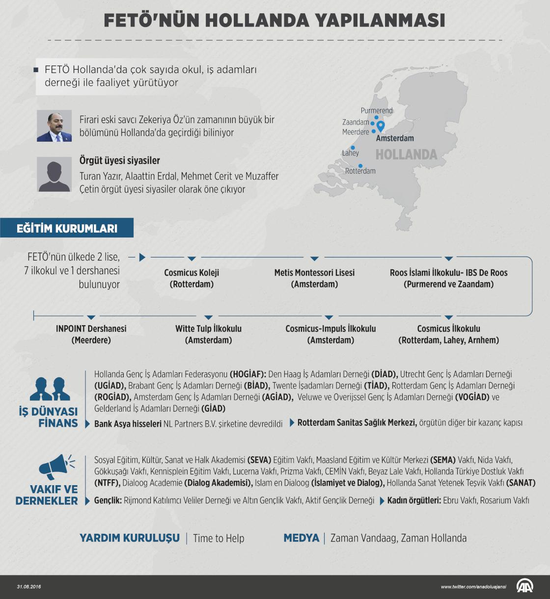 FETÖ'nün Hollanda yapılanması" başlıklı grafiğimizde “Roos İlkokulu-OBS De Roos (Amsterdam)," ifadesi isim benzerliğinden dolayı sehven yazılmıştır. Grafiğimizi yeniden yayımlıyoruz. Saygılarımızla. ( Kemal Delikmen - Anadolu Ajansı )