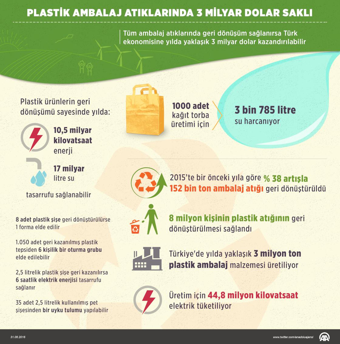 Tüm ambalaj atıklarında geri dönüşüm sağlanırsa Türk ekonomisine yılda yaklaşık 3 milyar dolar kazandırılabilir. ( Murat Usubaliev - Anadolu Ajansı )