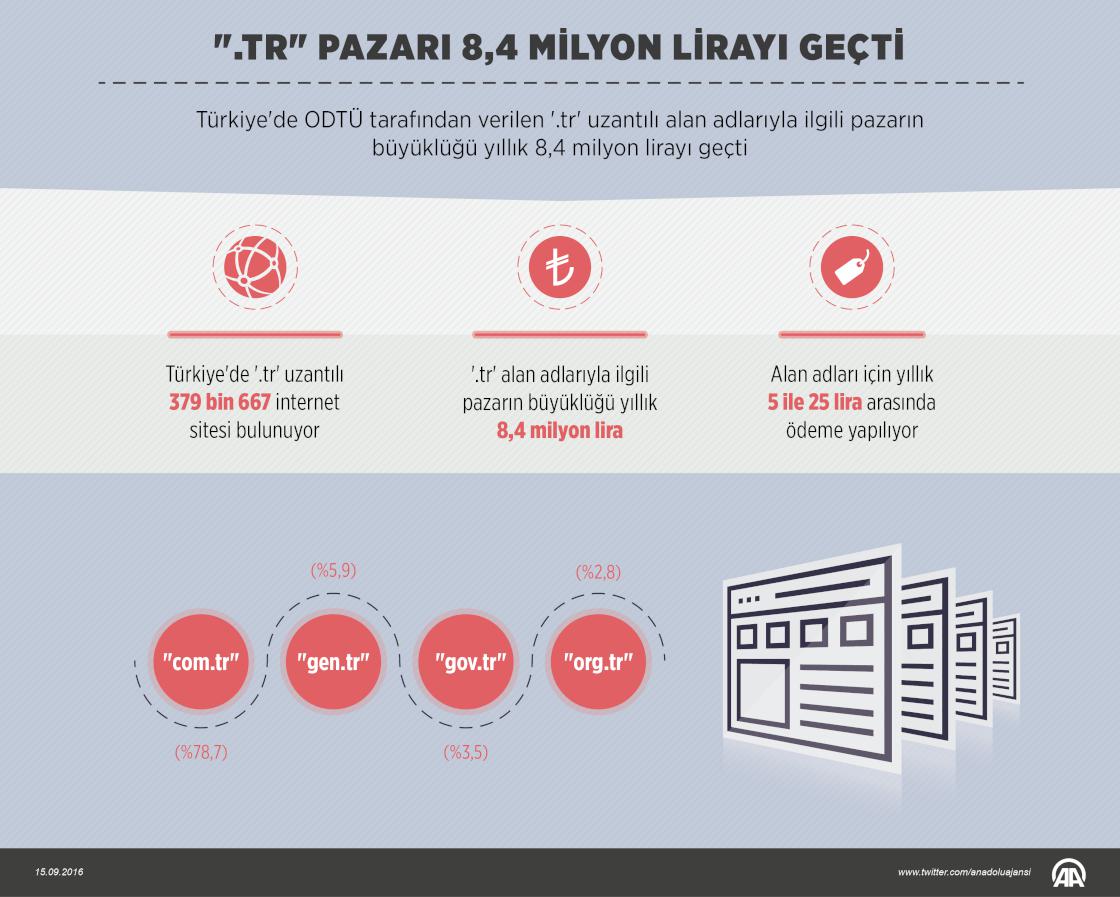 Türkiye'de ODTÜ tarafından verilen '.tr' uzantılı alan adlarıyla ilgili pazarın büyüklüğü yıllık 8,4 milyon lirayı geçti. ( Ahmet Burak Özkan - Anadolu Ajansı )
