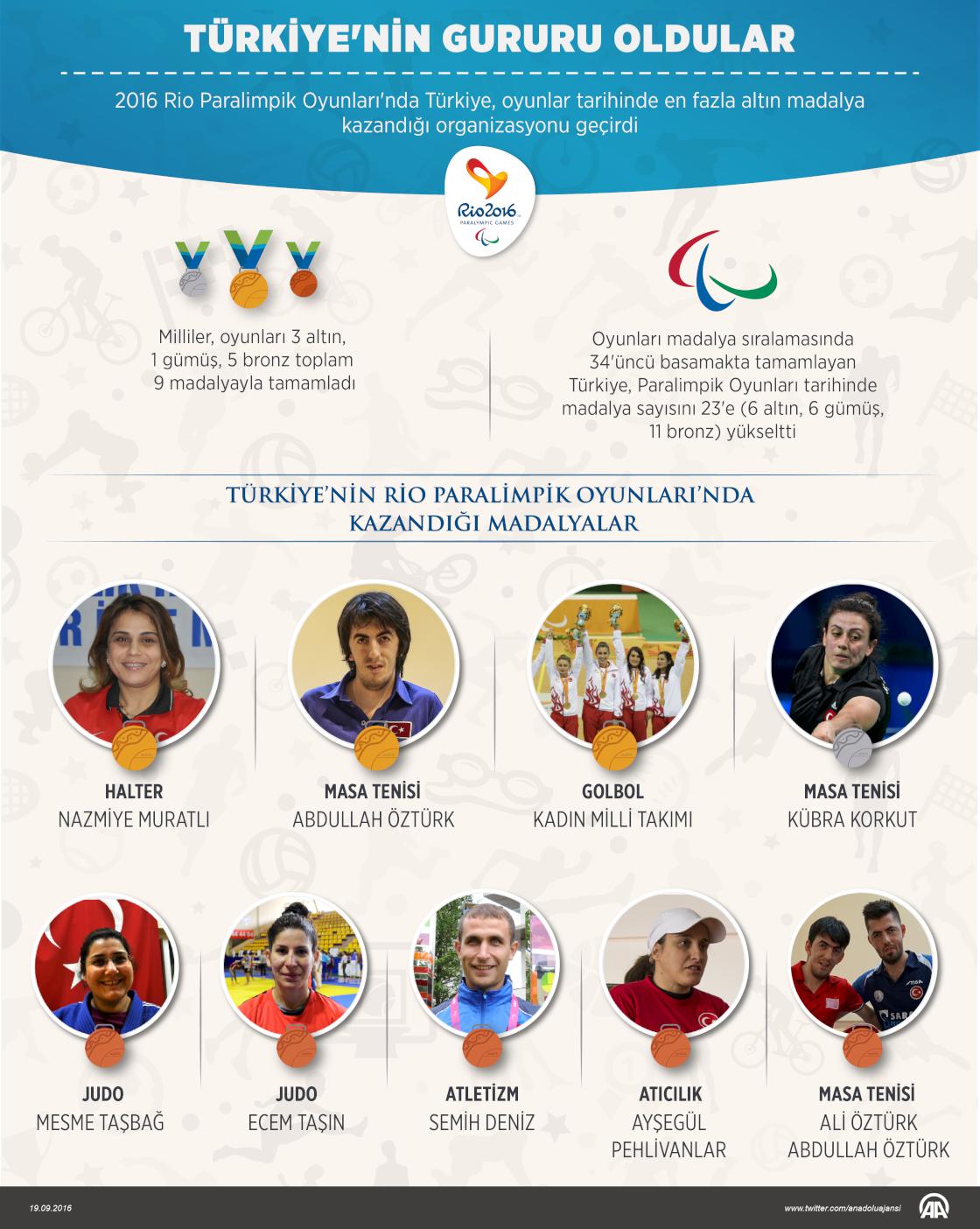 Türkiye, 2016 Rio Paralimpik Oyunları'nda kazandığı 3 altın madalya ile organizasyon tarihinin en başarılı performansını sergiledi. ( Muhammed Ali Yiğit - Anadolu Ajansı )