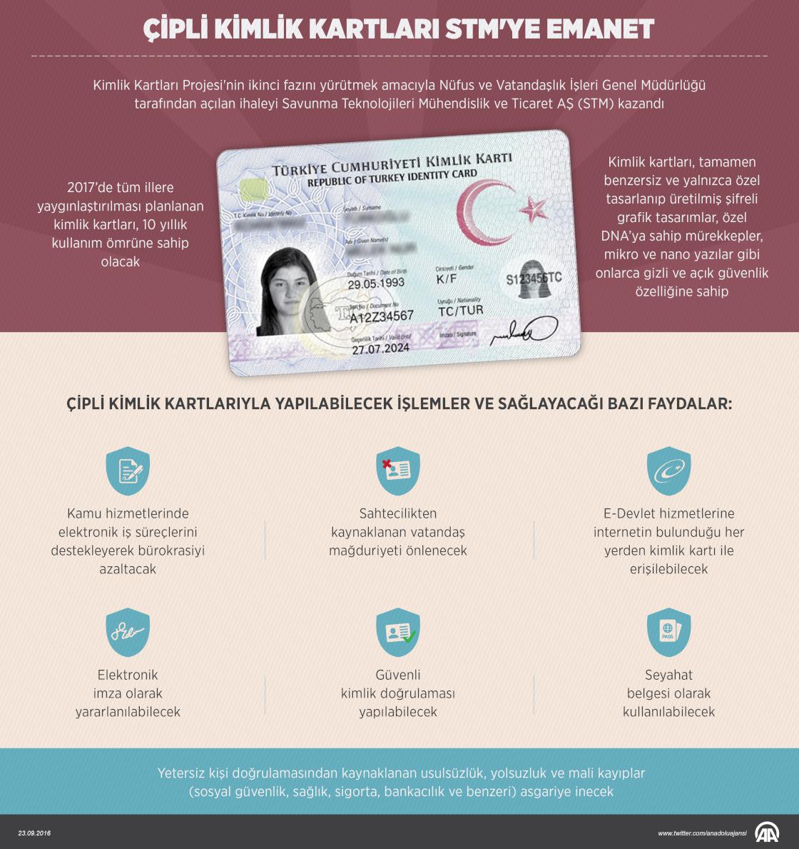 Kimlik Kartları Projesi'nin ikinci fazını yürütmek amacıyla Nüfus ve Vatandaşlık İşleri Genel Müdürlüğü tarafından açılan ihaleyi Savunma Teknolojileri Mühendislik ve Ticaret AŞ (STM) kazandı. Nüfus cüzdanlarının yerini alacak çipli kimlik kartlarına geçiş işlemlerini yürütecek şirket, otomasyonun güncellemelerini yapıp ilave kimlik kartlarının teminini sağlayacak. ( Yasin Demirci - Anadolu Ajansı )23 Eylül 2016•Güncelleme: 26 Eylül 2016
