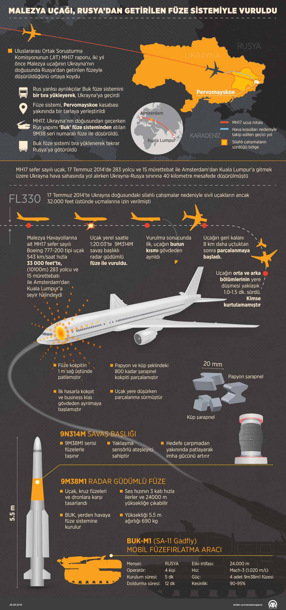 Ukrayna’nın doğusunda düşürülen Malezya Havayollarına ait yolcu uçağının, Rusya'dan tırla getirilen füzeyle vurulduğu tespit edildi. ( Murat Usubaliev - Anadolu Ajansı )