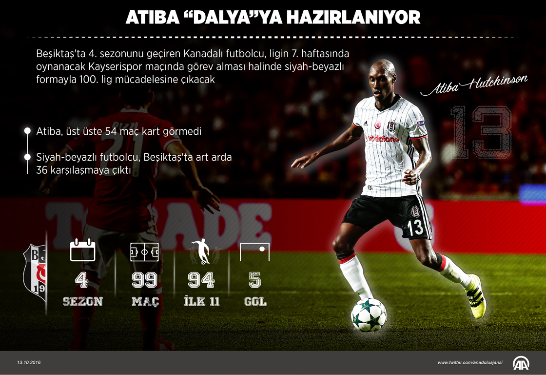 Beşiktaş'ta 4. sezonunu geçiren Kanadalı futbolcu, ligin 7. haftasında oynanacak Kayserispor maçında görev alması halinde siyah-beyazlı formayla 100. lig mücadelesine çıkacak. ( Kemal Delikmen - Anadolu Ajansı )