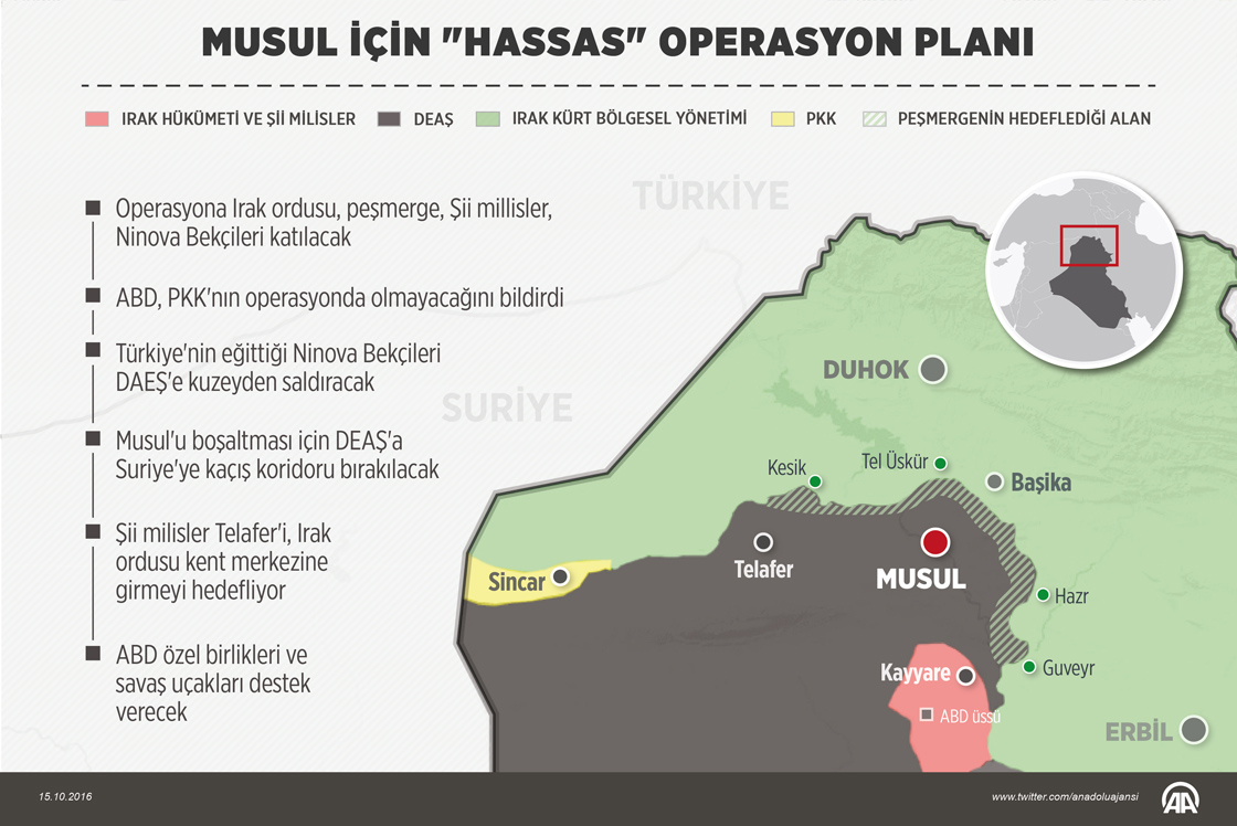 Irak'ın Musul kentini DEAŞ'ten kurtarmak için başlayacak operasyonda Irak ordusu, IKBY güçleri, Şii milisler, Ninova Bekçileri ve ABD özel birlikleri yer alacak.