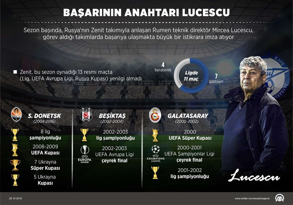 Bu sezon Rusya'nın Zenit takımıyla anlaşan Rumen teknik direktör Mircea Lucescu, gittiği takımlarda başarılarıyla dikkati çekiyor.