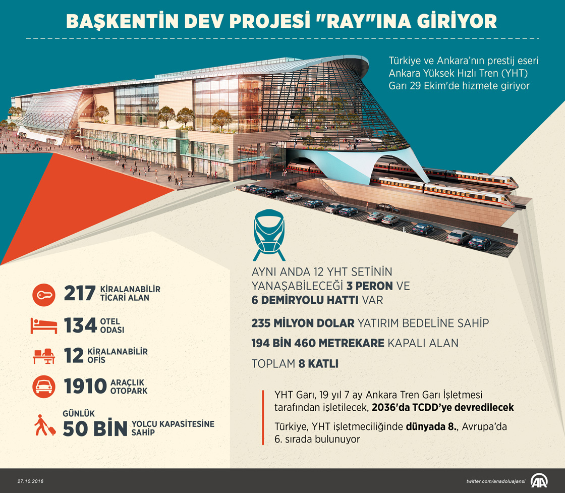 Türkiye ve Ankara’nın prestij eseri Ankara Yüksek Hızlı Tren (YHT) Garı 29 Ekim'de hizmete giriyor. ( Murat Usubaliev - Anadolu Ajansı )