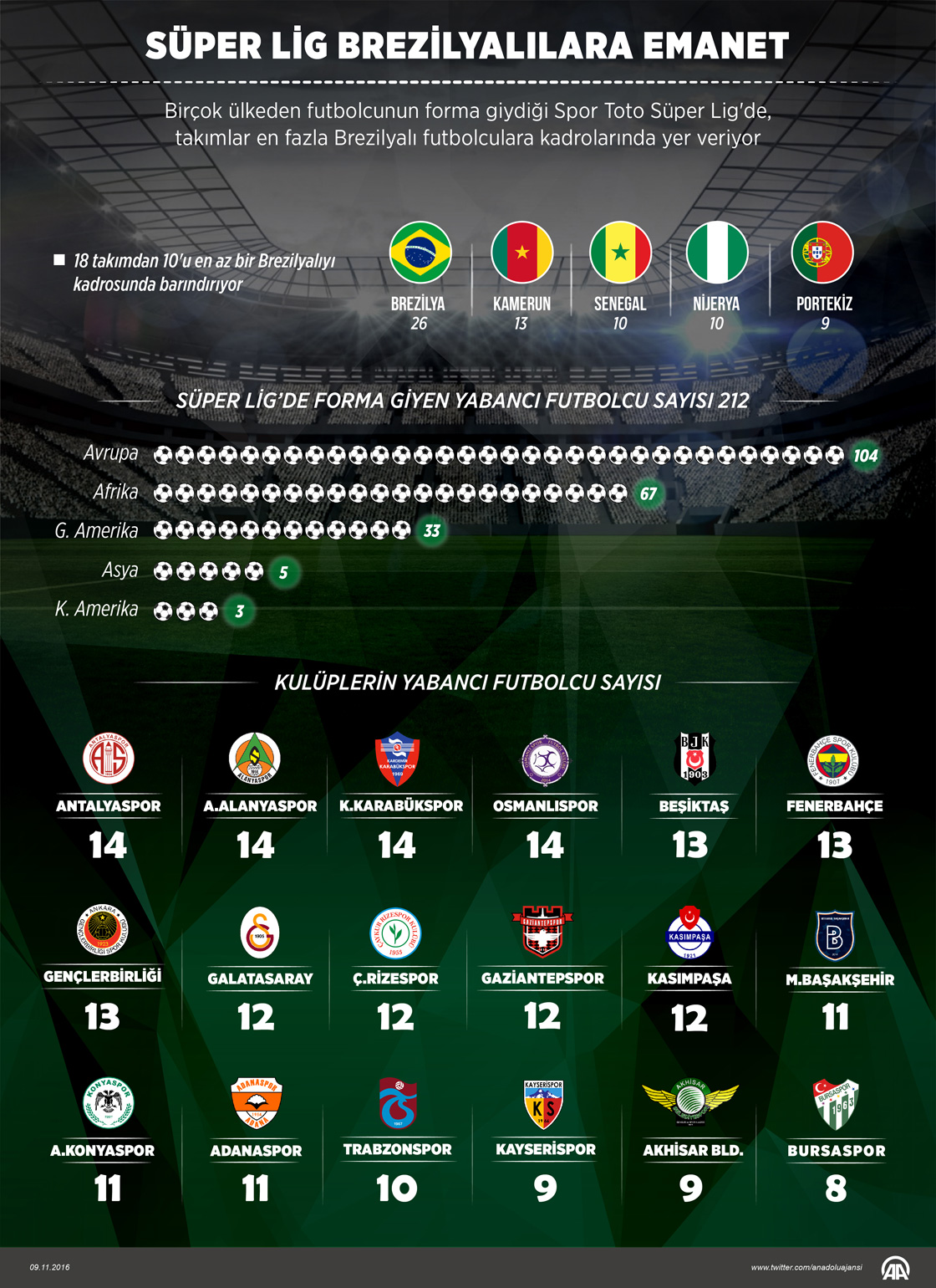 Birçok ülkeden futbolcunun boy gösterdiği Spor Toto Süper Lig'de, takımlar en fazla Brezilyalı futbolculara kadrolarında yer veriyor. ( Muhammed Ali Yiğit - Anadolu Ajansı )