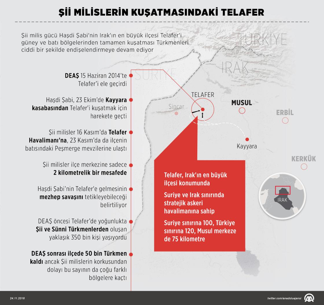 Şii milis gücü Haşdi Şabi'nin Irak'ın en büyük ilçesi Telafer'i güney ve batı bölgelerinden kuşatma altına alması Türkmenleri ciddi şekilde endişelendiriyor. ( Murat Usubaliev - Anadolu Ajansı )