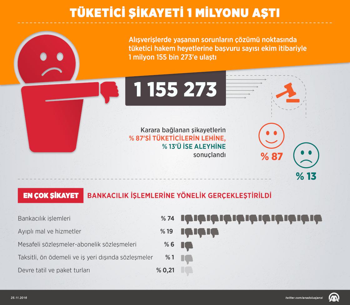 Alışverişlerde yaşanan sorunların çözümü noktasında tüketici hakem heyetlerine başvuru sayısı ekim itibariyle1 milyon 155 bin 273'e ulaştı.