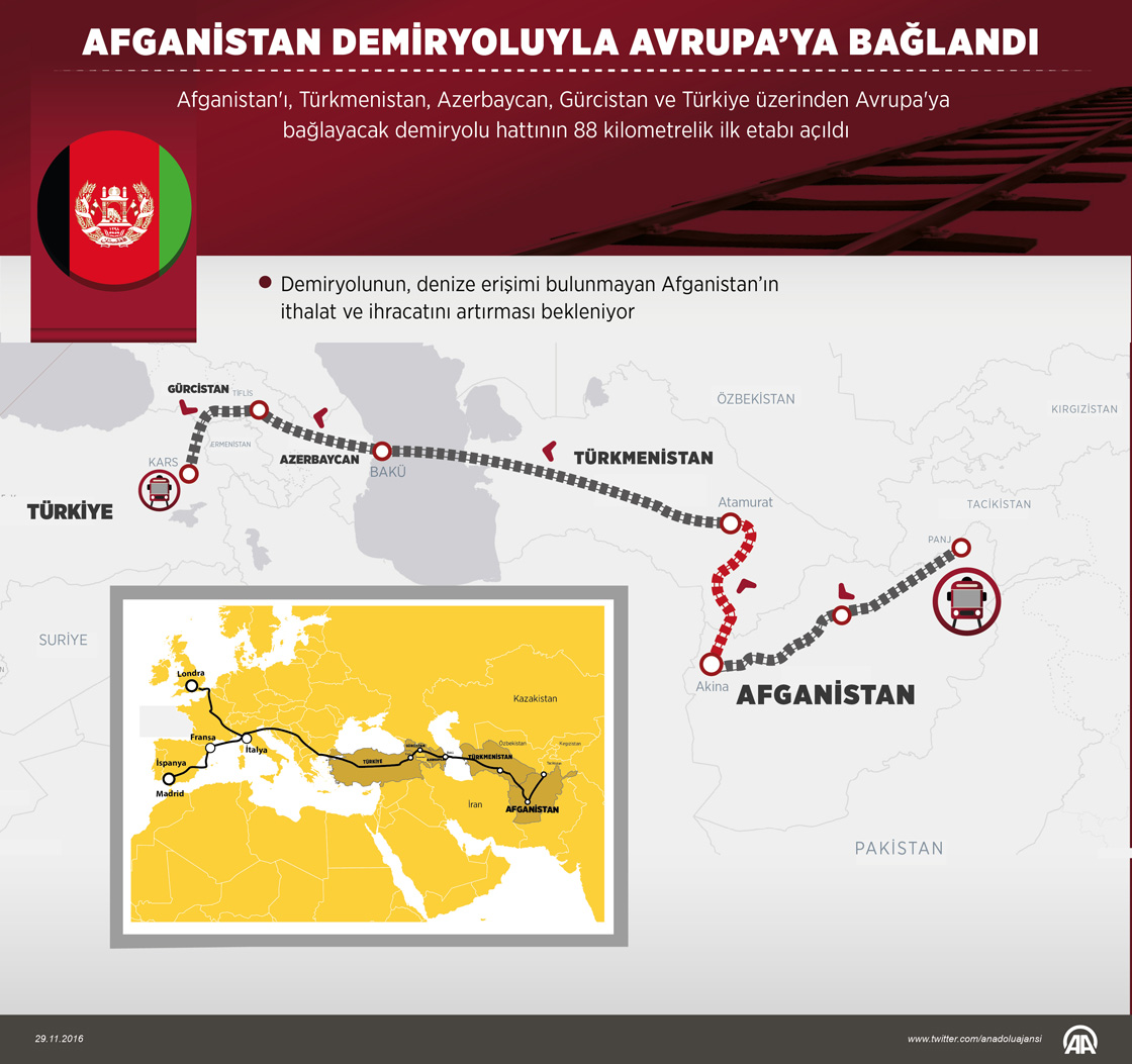 Afganistan'ı, Türkmenistan, Azerbaycan, Gürcistan ve Türkiye üzerinden Avrupa'ya bağlayacak demiryolu hattı açıldı. ( Gözde Gültekinler - Anadolu Ajansı )