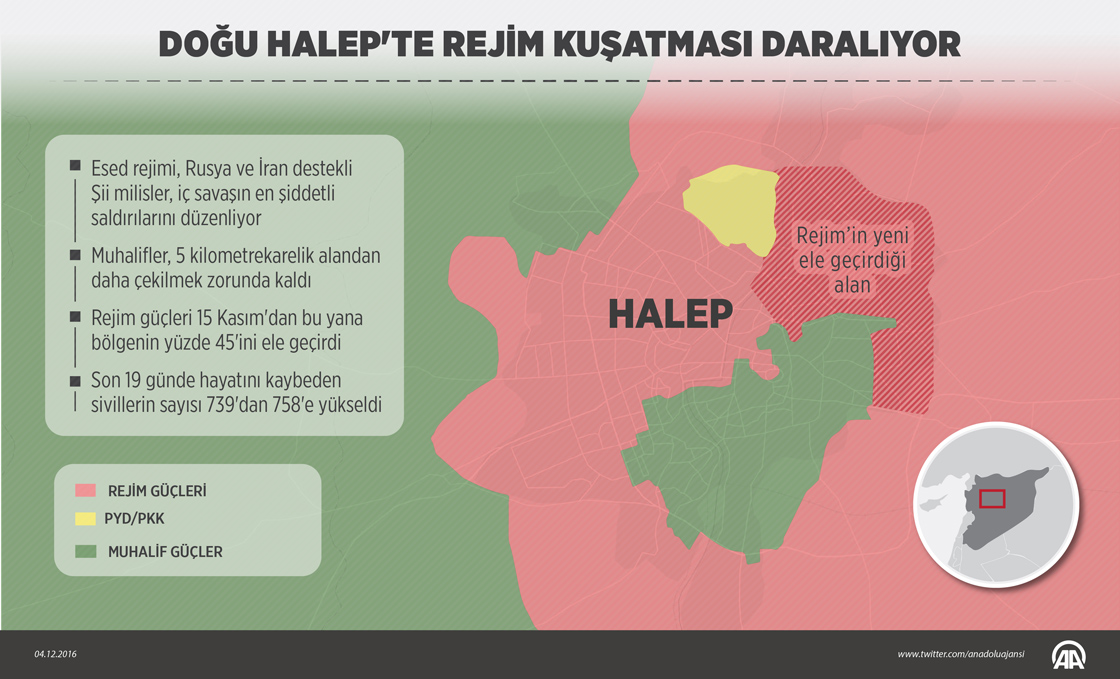 Suriye'de Halep kent merkezinin doğusunda rejim, Rusya ve İran destekli Şii milisler, iç savaşın en şiddetli saldırılarını düzenliyor.