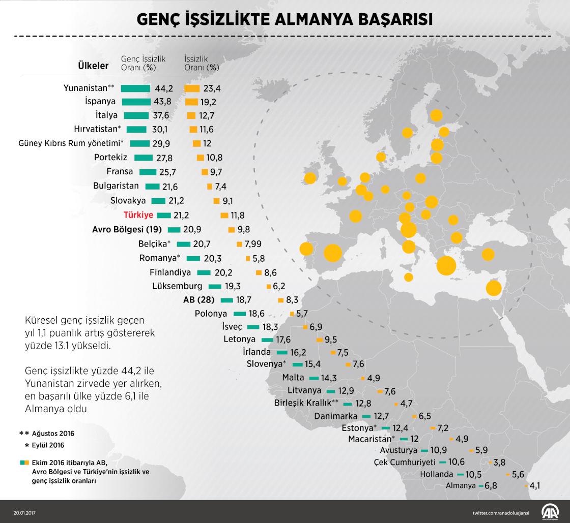 Küresel genç işsizlik geçen yıl 1,1 puanlık artış göstererek yüzde 13.1 yükseldi. Genç işsizlikte yüzde 44,2 ile Yunanistan zirvede yer alırken, en başarılı ülke yüzde 6,1 ile Almanya oldu. ( Yasin Demirci - Anadolu Ajansı )