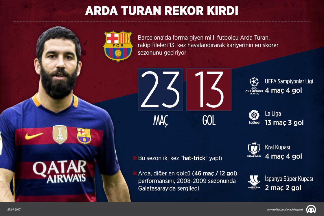 Barcelona'da forma giyen milli futbolcu Arda Turan, rakip fileleri 13. kez havalandırarak kariyerinin en skorer sezonunu geçiriyor. ( Yasin Demirci - Anadolu Ajansı )