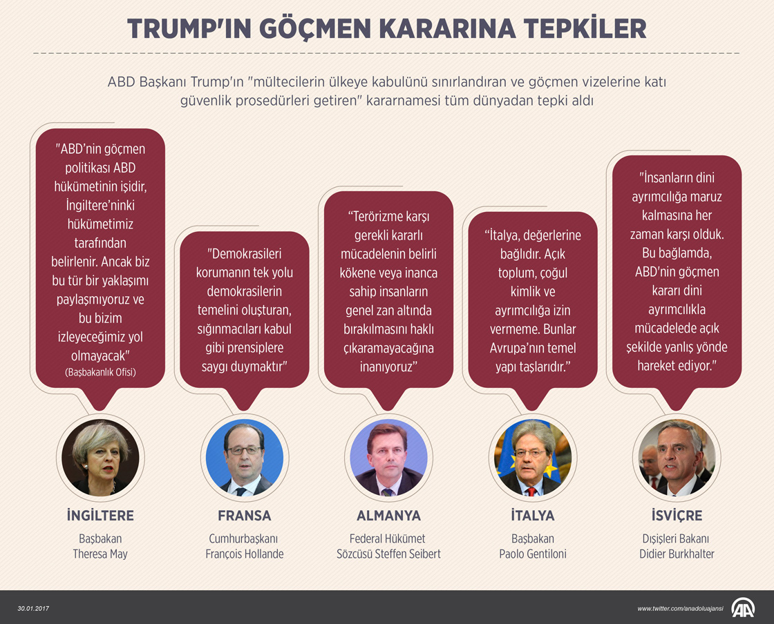 ABD Başkanı Trump'ın "mültecilerin ülkeye kabulünü sınırlandıran ve göçmen vizelerine katı güvenlik prosedürleri getiren" kararnamesi tüm dünyadan tepki aldı. ( Yasin Demirci - Anadolu Ajansı )