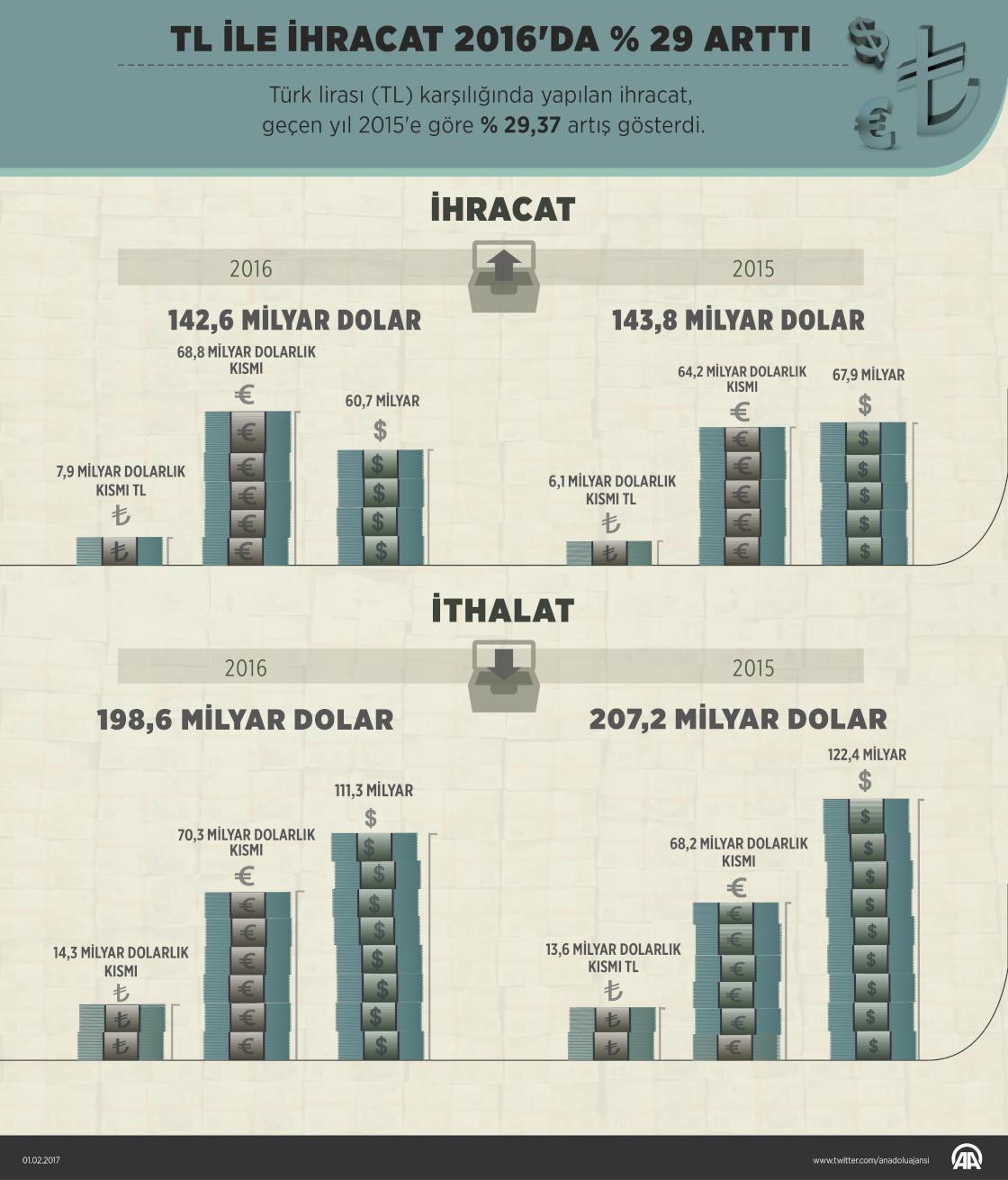TL ile ihracat 2016'da yüzde 29 arttı
