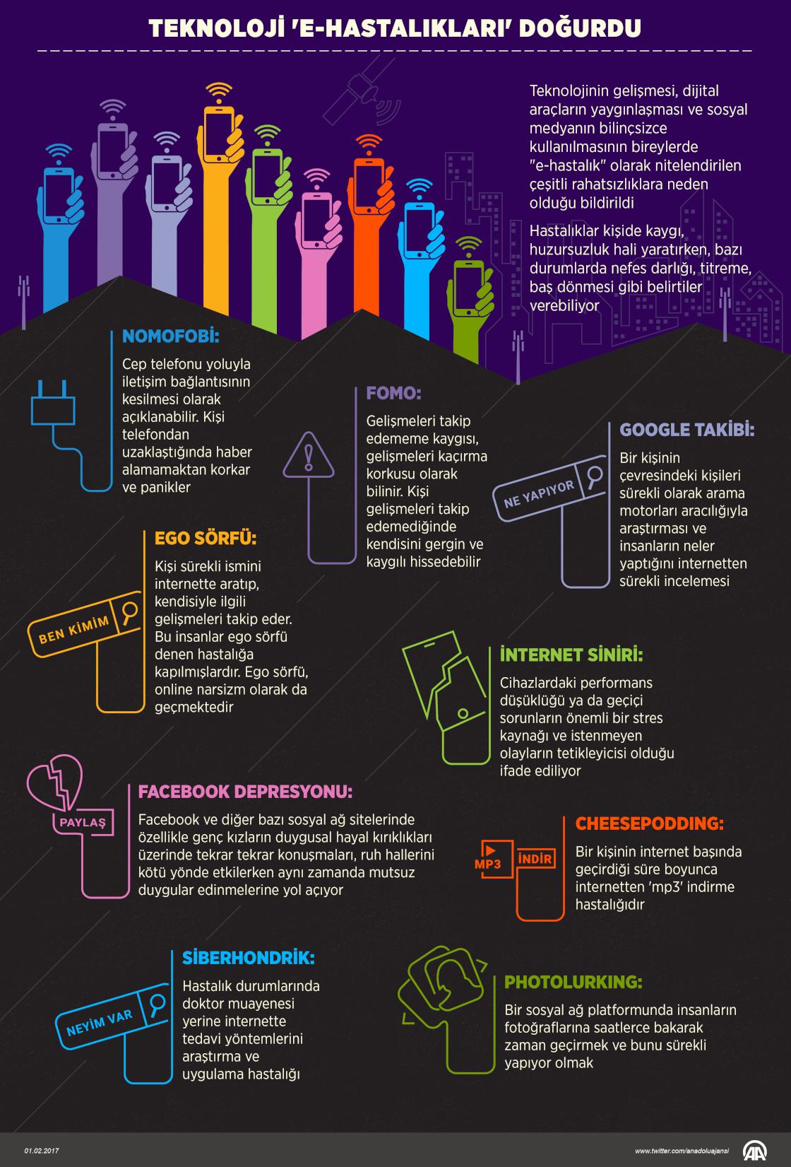 Teknolojinin gelişmesi, dijital araçların yaygınlaşması ve sosyal medyanın bilinçsizce kullanılmasının bireylerde "e-hastalık" olarak nitelendirilen çeşitli rahatsızlıklara neden olduğu bildirildi.