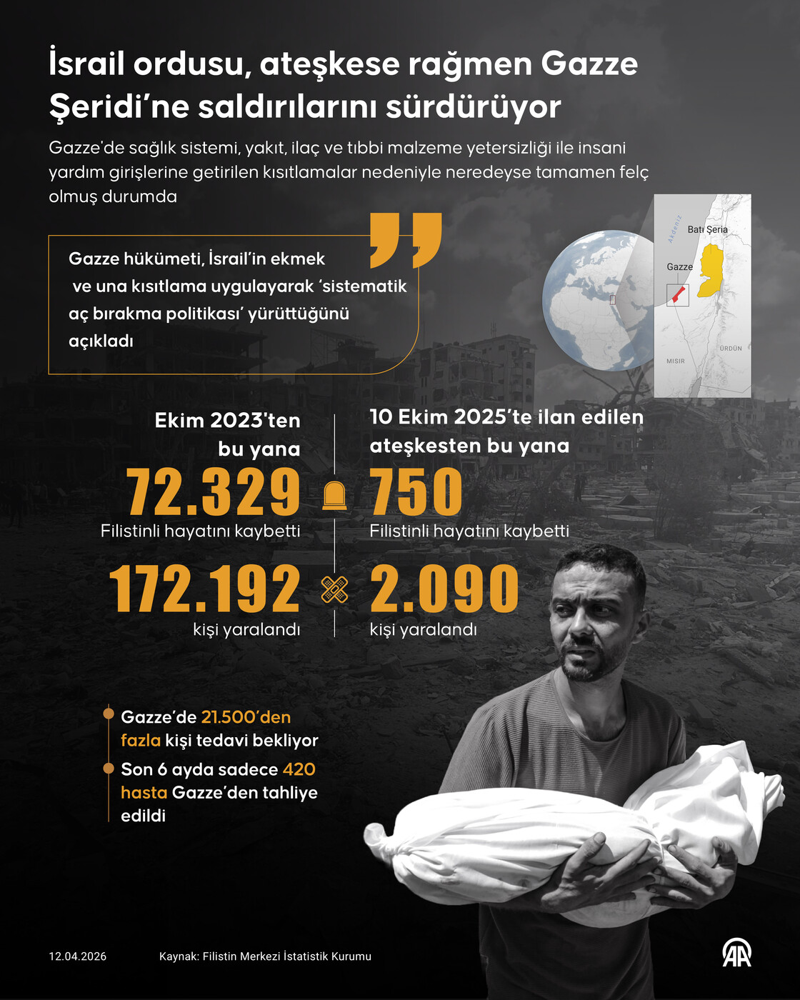 İsrail ordusunun Ekim 2023'ten bu yana Gazze Şeridi'ne düzenlediği saldırılarda yaşamını yitirenlerin sayısı 72 bin 329'a ulaştı.