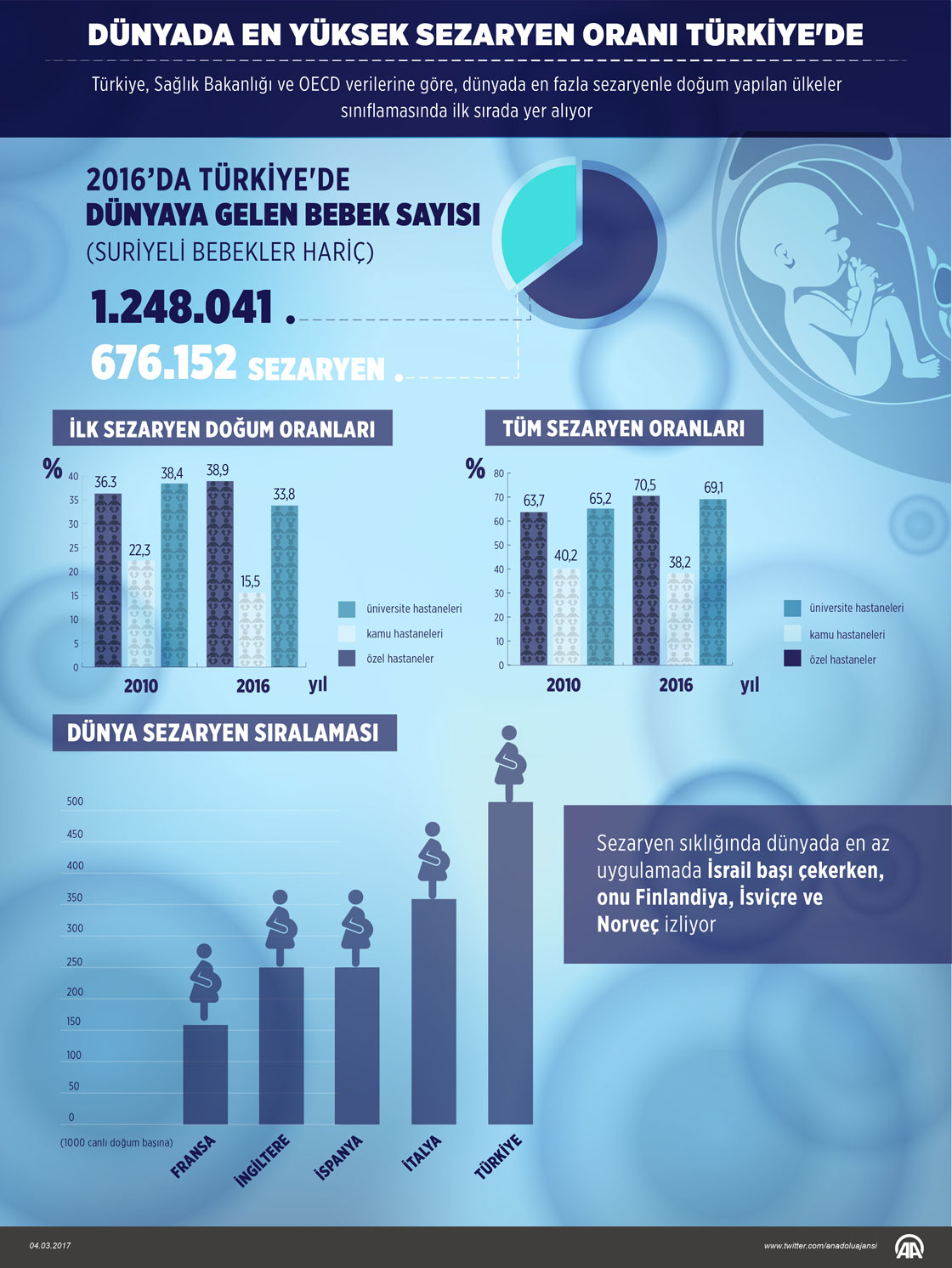 Sağlık Bakanlığından edinilen bilgiye göre, İktisadi İşbirliği ve Gelişme Teşkilatının (OECD) ülkelerdeki sezaryen oranları ile Türkiye rakamları karşılaştırıldığında çarpıcı sonuçlar elde edildi.